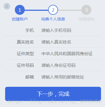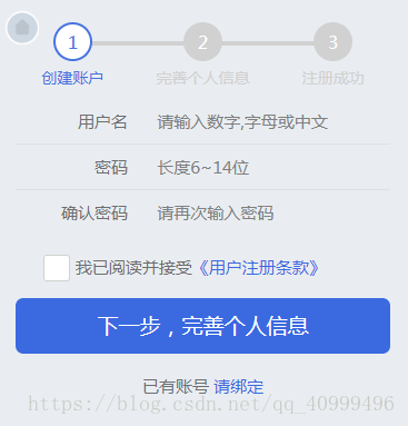 在完善信息的時候獲取所有的變量(用戶名和密碼也在內),然后在點擊下一步完成按鈕將數據上傳到數據庫。
