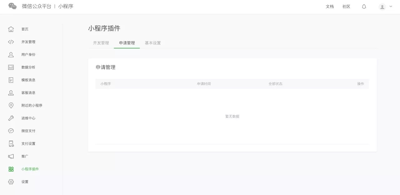 微信小程序插件的名稱也必須是獨一無二的,申請完畢后就可以獲得 插件的AppId了。