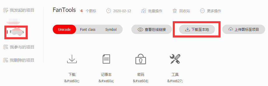 3. 點擊圖標管理->我的項目, 選擇對應的項目, 下載至本地